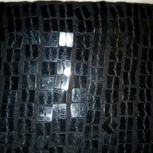 Gorgeous hand-done, square, shimmery opalescent sequins. When you move, the top gives off an amazingly cool effect of oil on water, as each sequin picks up the light at different times.