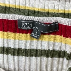 HAVEN | Off Shoulder S Boat Neck Long Sleeve Long Green Red Yellow Striped Sweater