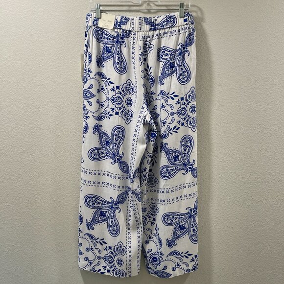 HAVER & BLAIR (NWT) Woven Wide Leg Pull On Crop Linen Blend Pants, BLU/WHT - M
