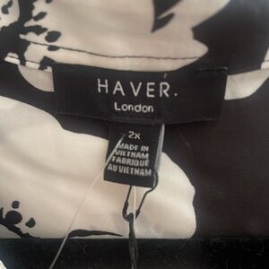 Beautiful brand new women's size 2X, Haver of London, black-and-white blouse two button cuff