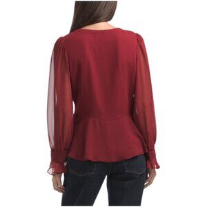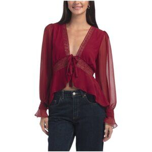 HAVER Solid Pebble Chiffon Blouse With Lace Trim