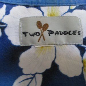 TWO PADDLES Button Down Hawaiian casual shirt. Floral design. Sz Lg. There is no size tag on it but it is a large. Excellent condition. QUICK SHIPPING
