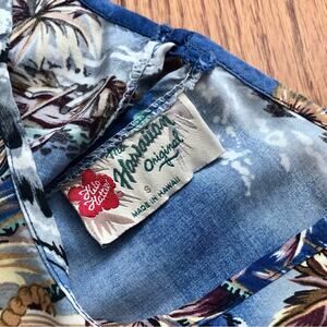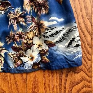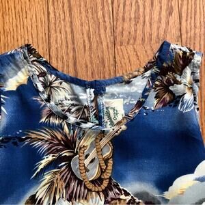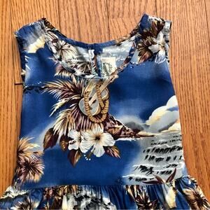HAWAIIAN ORIGINAL A-line Tropical Floral Blue Tan Brown Dress Girl’s Size S