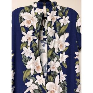 HAWAIIAN RESERVE COLLECTION Orchid Print Navy/White/Green Midi Dress, Sz XL