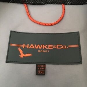 HAWKE & CO men’s hooded rain jacket. Size XXL. Full front zip closure. Three front zip pockets. Interior zip pocket. Breathable and packable. Wind and water-resistant. Great travel jacket for all seasons.
