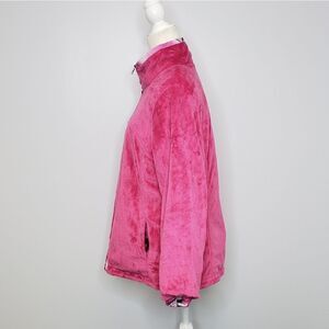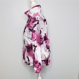 Hawke & Co reversible jacket. This coat is 2 in 1! Feel like making a statement? Wear the watercolor print side, want a solid color? Flip to the fuzzy magenta side. Both sides have pockets.