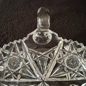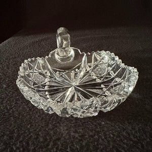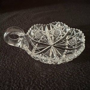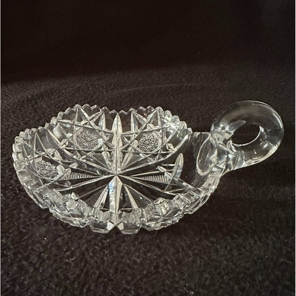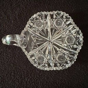 HAWKES American Brilliant Cut Glass Nappy Dish Bowl Signed Excellent condition with a few tiny chips on teeth; see photos for condition description. 5 " diameter x 1" high (not including the handle)
