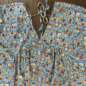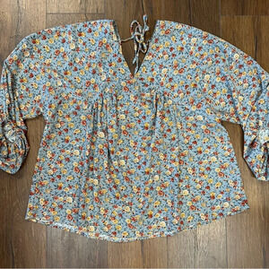 HAYDEN Keep you in my heart, Dusty blue ditzy floral top SZ MED