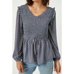 HAYDEN Laura Blue Floral Smocked Ruffle Blouse Medium