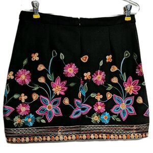 HAYDEN Los Angeles Mini Skirt Women Medium Embroidered Flowers Black Bright M