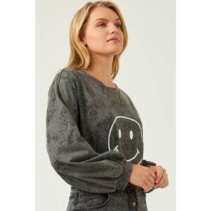 HAYDEN Sunni Smiley Face Black Wash Sweatshirt