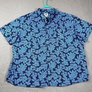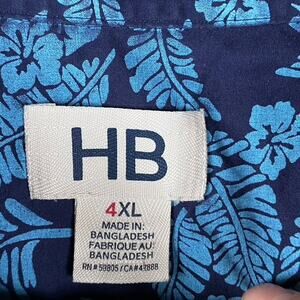 HB Button Shirt Men's 4XL Blue Floral Print Resort Vacation Causal