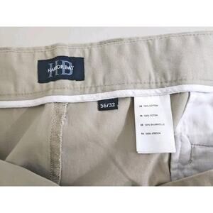 The pants come in a size 56 waist and 32 inseam, with a khaki color and solid pattern. They also have slash pockets and a button and zipper closure. These pants are part of the HB product line and are made in Bangladesh. Add these versatile khakis to your collection today!