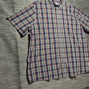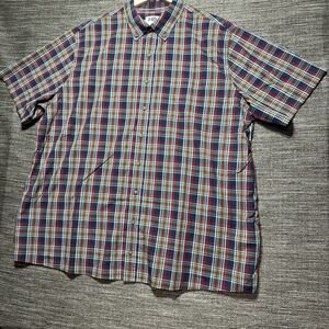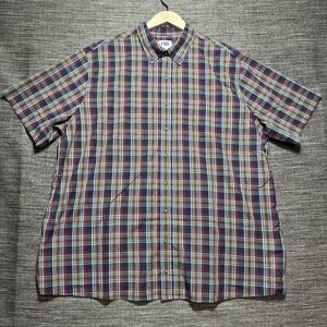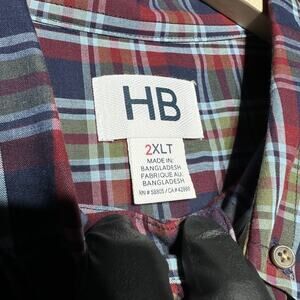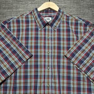 HB Harbor Bay Shirt Men's 2XLT Blue Red Plaid Short Sleeve Button Up