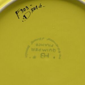 HB Henriot Quimper SOLEIL YELLOW Breton Woman Octagonal 10 1/4" Dinner Plate