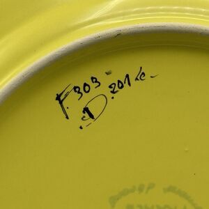 Features: Yellow, handpainted, colonial style lady, tree, flowers, octagon shaped