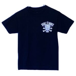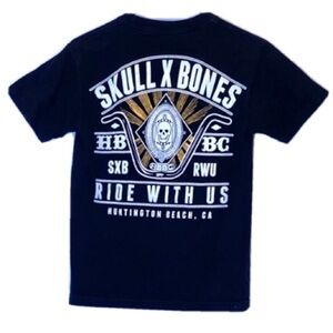 HBBC. SKULL X BONES Pre-Owned T SHIRT Huntington Beach Bicycle Company. Great-looking t shirt with bold skull graphics and logo! Armpit to armpit measures approx 17” wide. Base of back collar to hem measures approx 23.5” long. SH 62