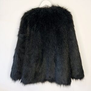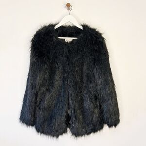 HBC Hudson's Bay Black Shaggy Faux Fur Coat with Pockets