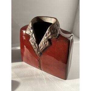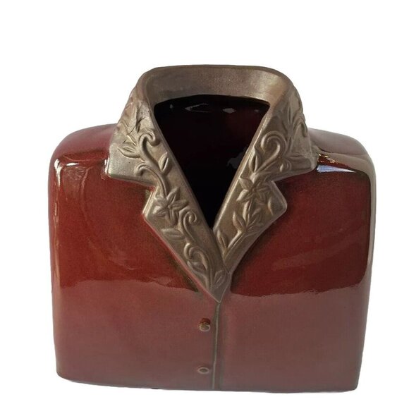 •HBH• Hawaiian Style Glossy Dark Red Shirt Jacket Rough Brown CollarCeramic VASE