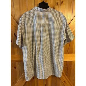 HB Harbor Bay Shirt Men's Collared Plaid Short Sleeve Button Up Size 2XLT Pocket Measurements Pit to Pit 30" Length 32" (8678)