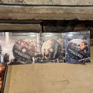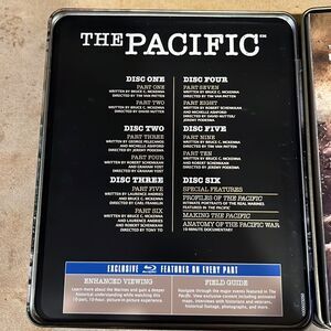HBO The Pacific Blu-ray six-disc set with metal case. All ten episodes of the mini series. Additional content, interactive maps, historian interviews, etc.