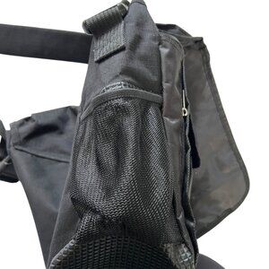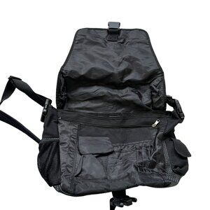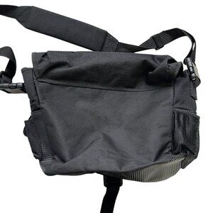 Promotional HBO messenger bag, black nylon, embroidered logo, adjustable crossbody strap, exterior pouches, flap with plastic buckle closure, measures approx: 18x13x5", preowned and shows wear on the lining - see photos