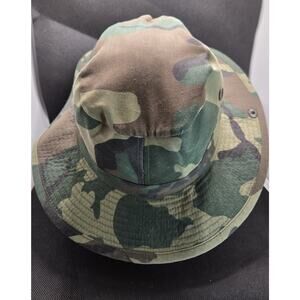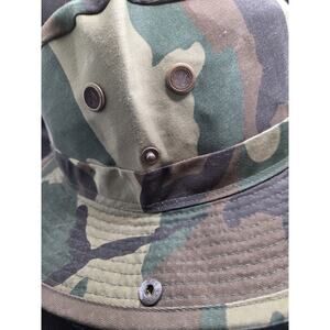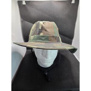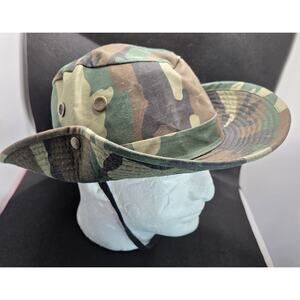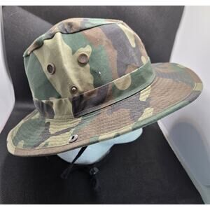 In wonderful clean condition. The HC Woodland Camo Boonie Bucket Hat is a stylish and functional accessory for men. Made from a blend of polyester and cotton, this lightweight hat features a wide brim to provide excellent sun protection. The adjustable chin string and vented snaps ensure a comfortable and secure fit. The colorful camouflage pattern adds a touch of outdoor flair to any outfit, making it perfect for outdoor adventures or casual wear. Made in China, this one-size bucket hat is a versatile addition to any wardrobe.