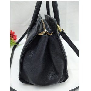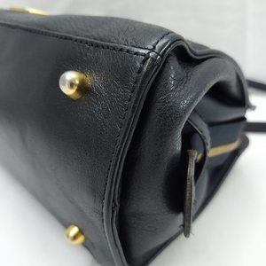 HCL Black Leather Zipper Closure Satchel Shoulder Bag - Vintage -Made in Germany