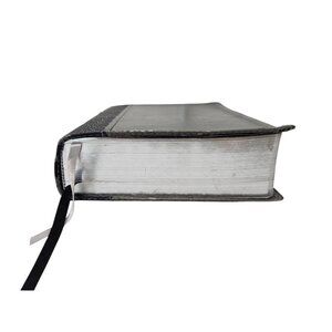 The faux leather cover is peeling on the edges (see pictures). The presentation page has writing, but the Bible pages are clean.