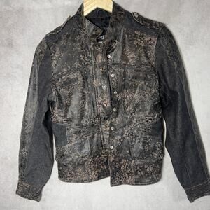 H&D Classic 90's vintage-inspired Leather Collection Denim Distressed Jacket Moto Biker Women’s Small