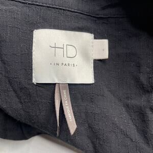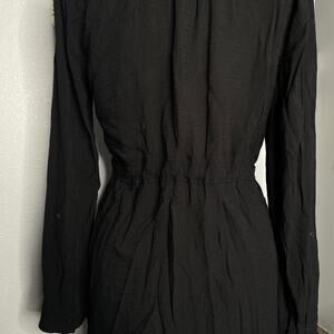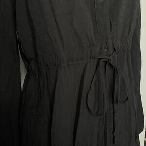 HD IN PARIS Black Button Up Dress Longsleeve Cover Up Semi Sheer Tie Waist Med