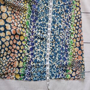 Bold and eclectic maxi dress with a rainbow animal print and statement neckline.
