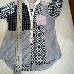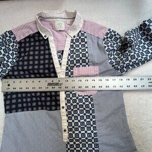 HD In Paris Womens Patchwork Shirt Size 4 Blue Pink Cotton Long Sleeve Button-Up