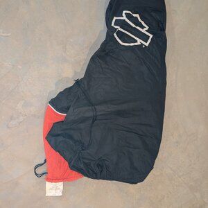 Harley Davidson Small Motorcycle Cover in excellent used condition. Used with an Iron 1200. Orange/Black with Harley-Davidson graphics, Breathable polyester cover promotes air circulation to reduce moisture build-up and minimize corrosion during short or long term storage, front and rear adjustable drawstrings to cinch the cover around the bike and a convenient belly strap to reduce ballooning in the wind, opening near the front wheel for a security chain or cable and internal pockets that accept the optional Cover Alarm, and reflective piping for added visibility.