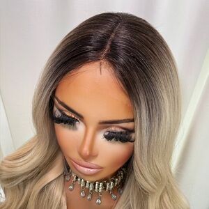 HD Transparent Lace Front Loose Curl Blonde Dark Root Ombre Long Wig