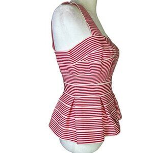 This Anthropologie HD in Paris Cabana Peplum Bandage Tank Top in red and white stripe is an elegant addition to your summer wardrobe. The small petite size ensures a perfect fit. Exposes back zip, stretchy