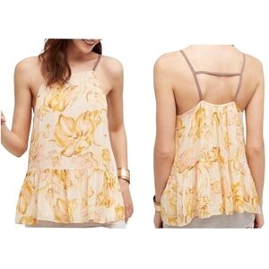 HD in Paris from Anthropologie floral cami top with open strap back detail and bottom ruffle.