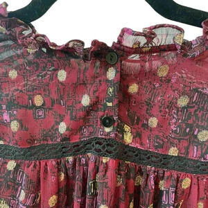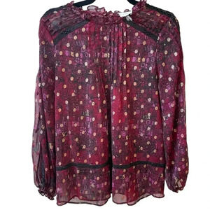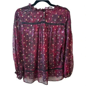 HD in Paris Anthropologie Sheer Long Sleeve Blouse Metallic Lace