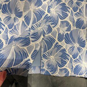 This dress is so cute and it feels like very well made quality. Its thick material double lined with an inner satin like materiel in light blue. Zippered back. This falls just below the knees.