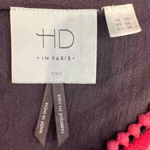 Anthropologie HD in Paris embroidered and beaded with pom poms on bottom hem. Key hole button closure on back. Great pre-owned condition