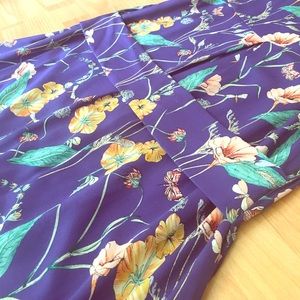 HD in Paris purple shift dress with floral print on it. Perfect for the summer occasion. It goes right above my knees, and I am 5'6". The back has a back detail strap. I have only worn it about four times. It has a loose full lining that is attached at the armhole and the neckline.