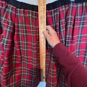 Classic red plaid skirt with a comfortable elastic waistband. This skirt combines style and ease with a flattering A-line silhouette, perfect for casual wear, layering, or seasonal looks. Bring holiday cheer with this classic red plaid skirt — perfect for festive gatherings, casual winter looks, or adding a preppy touch to your wardrobe