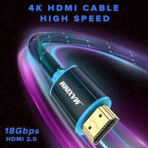 HDMI Cable 4K Ultra HD 12 Foot Nylon Braided HDMI 2.0 Cable 2 Pack NEW