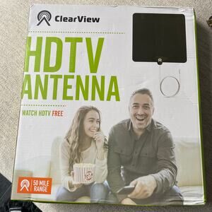 HDTV Antenna 50 Mile Range NEW Clear View Ultra Thin Reversible NEW in box