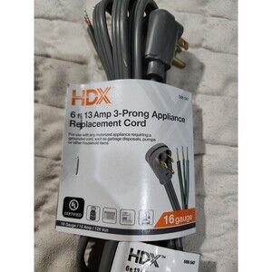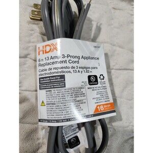 HDX Extension Cord 6 Ft 13 Amp 3 Prong Appliance Replacement Indoor PVC Gray New