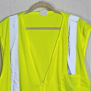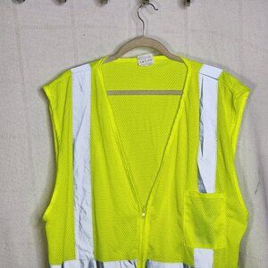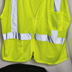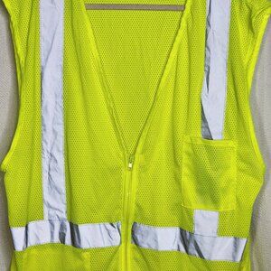 HDX Hi Visibility Neon Green Mesh Type R Class 2 Poly Zip Front with Pockets Safety Vest OSFM.....For Everyone's Safety this Brightly Colored with Reflective Silver Tone Stripes Safety Vest is Easily Seen at Night in the Dark....Great for Keeping Everyone Safe.....Like Brand New.....