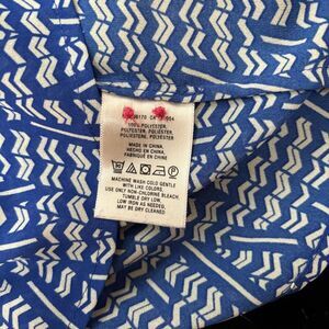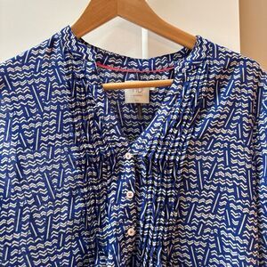 This HD in Paris blouse, sold through Anthropologie, is a statement piece with an effortlessly chic vibe. Featuring a bold geometric pattern in a striking cobalt blue and ivory combination, this blouse is perfect for adding a touch of modern sophistication to your wardrobe.