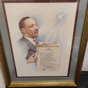 'HE Changed The Course of History" - Martin Luther King Art Print Signed C Downey Appx 16x13.25" Gold Tone Framed