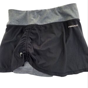 HEAD Active Tennis/Running/Workout Black and Gray Skorts, polyester/spandex blend, hidden waist pocket, 26" waist, 12" waist to hem, iconic logo, previously owned, excellent condition