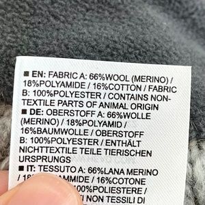 Fabric: 66% Merino Wool / 18% Polyamide / 16% Cotton / Topper contains non-textile parts of animal origin